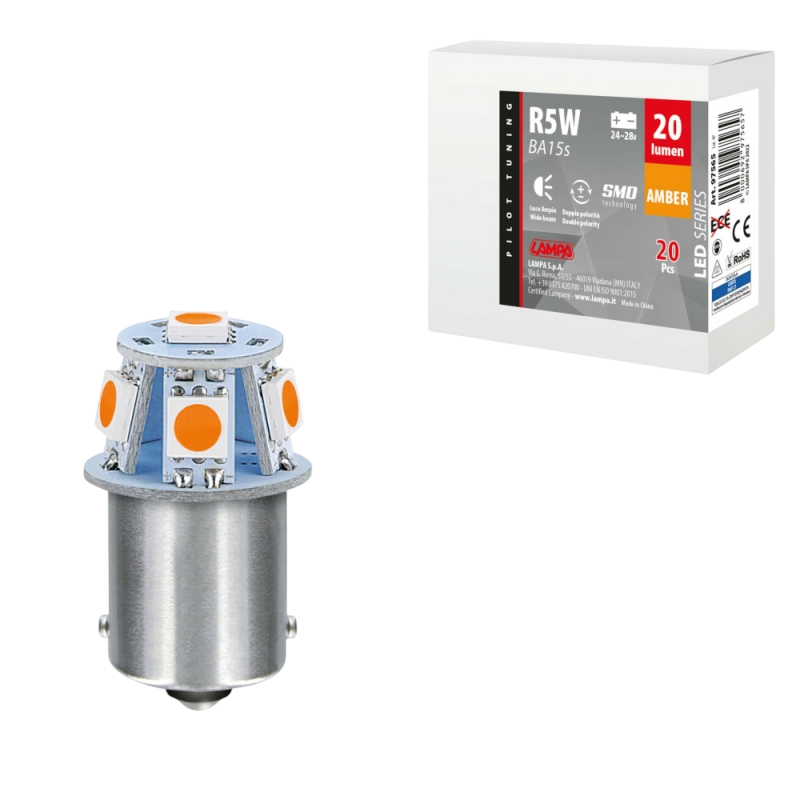 LAMPARA LED SERIES-6 SMDX1CHIP-(R5W)-BA15s NARANJA-DOBLE POLARIDAD 24/28V