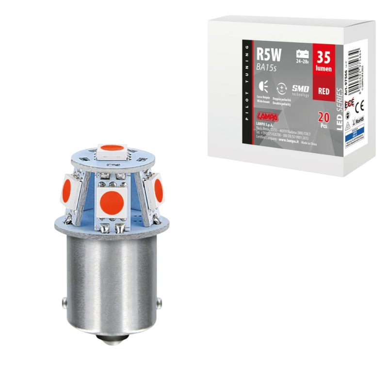 LAMPARA LED SERIES-6 SMDX1CHIP-(R5W)-BA15s ROJO-DOBLE POLARIDAD 24/28V