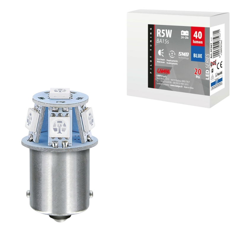 LAMPARA LED SERIES-6 SMDX1CHIP-(R5W)-BA15s AZUL-DOBLE POLARIDAD 24/28V(20 UNIDADES)