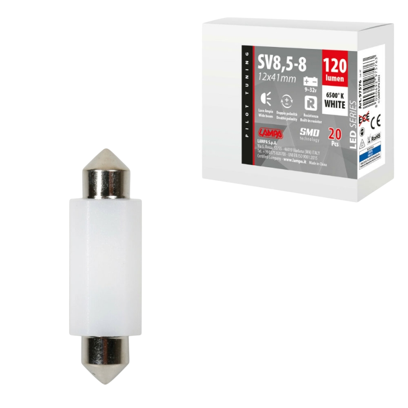 LAMPARA LED SERIES 2 SMD 1 CHIP 12*41MM-SV8,5-8 BLANCA DOBLE POLARIDAD RESISTENCIA INCORPORADA 9/32