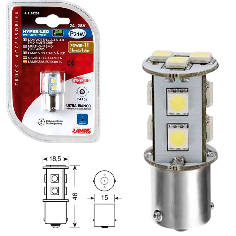 LAMPARA HYPER LED POWER 39 BLANCO 24/28V P21W
