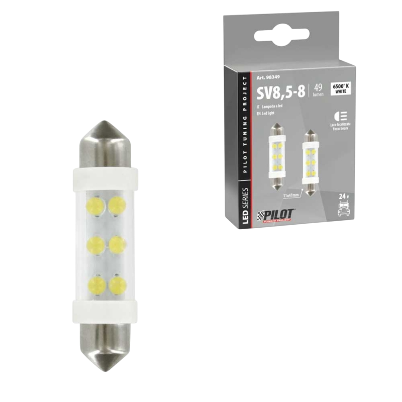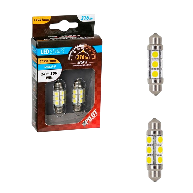 LAMPARA 11X41 MM 6 LED SILURO BLANCO 24V SV8,5-8 (BLISTER 2 UNIDADES)