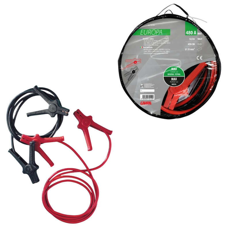 CABLES DE ARRANQUE 12/24V 480A CABLE 450 CM DIN 35 MM2 NORMA EUROPEA DIN 72553