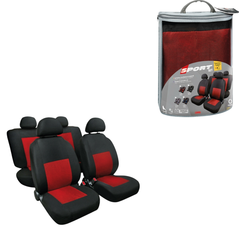 FUNDA ASIENTO DEPORTIVO EN POLIESTER 8 PIEZAS ROJA/NEGRO