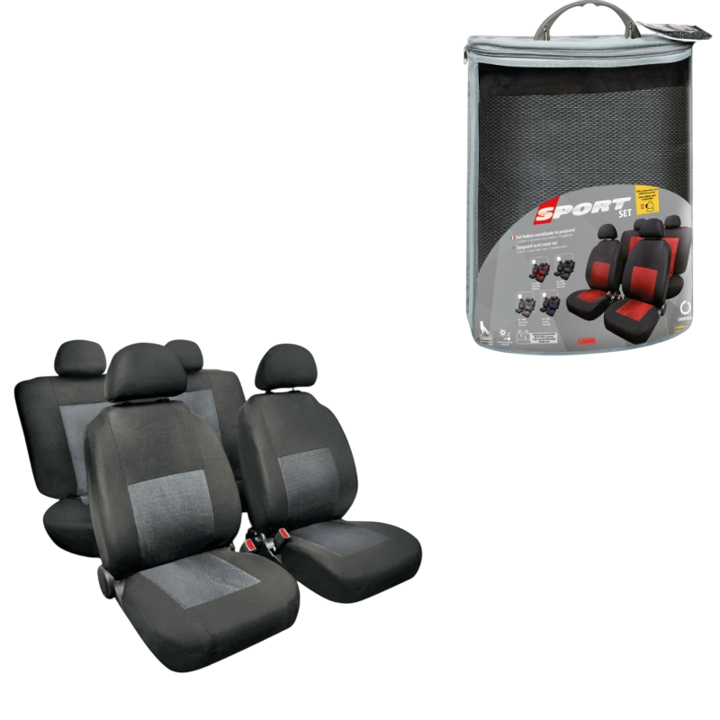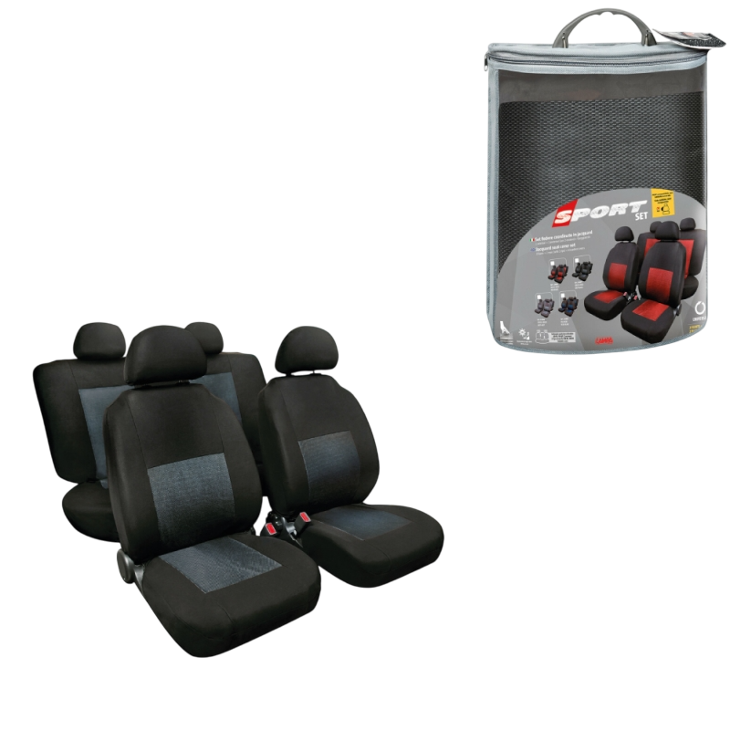 FUNDA ASIENTO DEPORTIVO EN POLIESTER 8 PIEZAS NEGRO/GRIS