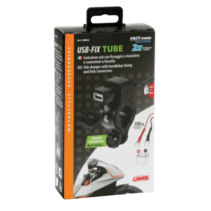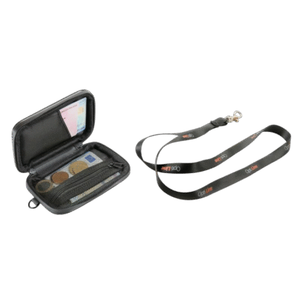 Cuenta con un mosquetón de seguridad en uno de sus extremos, lo que facilita su conexión rápida al soporte OptiLine o a estructuras como el manillar de la moto o el cinturón. Su diseño retráctil tipo espiral optimiza el espacio, evitando enredos y garantizando que no moleste al conducir o caminar.