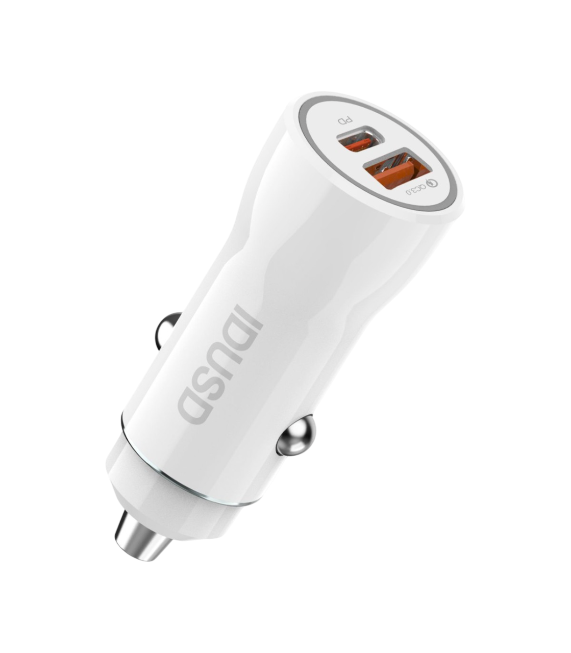El Cargador de Coche PD+QC 38W proporciona una carga ultrarrápida y segura para tus dispositivos móviles. Con dos puertos (USB-C PD de 20W y USB-A QC de 18W), ofrece una potencia combinada de 38W, permitiendo cargar smartphones, tablets y otros equipos simultáneamente, maximizando la eficiencia durante cada viaje.