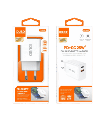 Dos Puertos con Carga Rápida: Puerto USB-C PD (20W) y USB-A QC (18W) para cargar dos dispositivos a la vez.