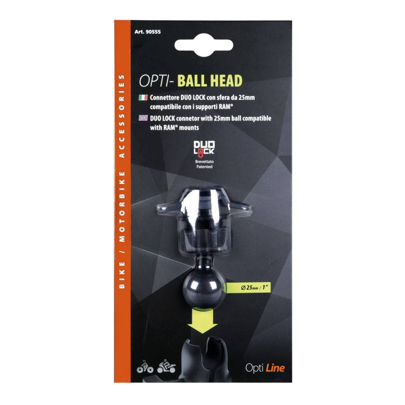 Conector Optiline con bola de 25 mm: accesorio robusto y versátil para soportes de motocicleta, compatible con sistemas de montaje estándar.
