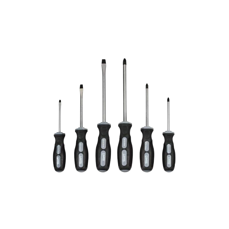 6 piezas surtidas: Incluye destornilladores planos y de punta estrella en varios tamaños.
