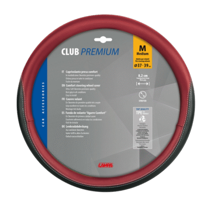 a Funda Volante Club Premium (40‑42 cm) está confeccionada en cuero sintético muy suave, perforado y transpirable, lo que proporciona un tacto premium y una ventilación excelente. Su interior utiliza un material ecológico, reciclable, no tóxico e inodoro, en total conformidad con la normativa europea REACH, garantizando comodidad, seguridad y sostenibilidad. Gracias a su excelente agarre antideslizante, ofrece control y confianza en cualquier condición de conducción.
