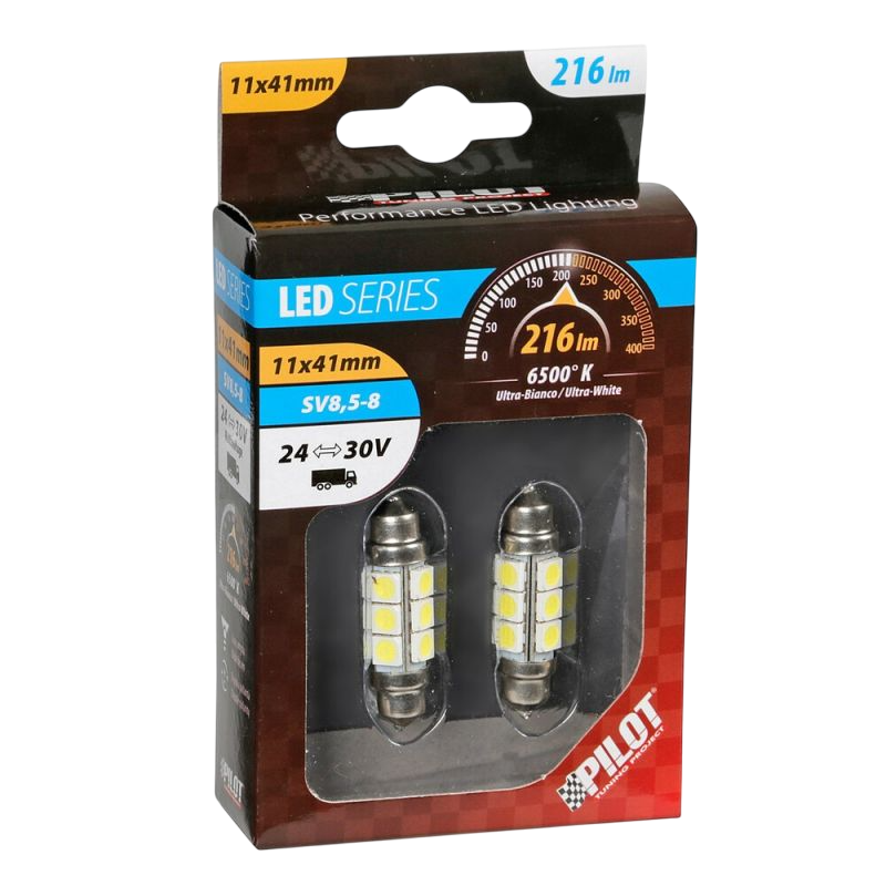 20/30 V Hiper-Led 36 – 12 SMD x 3 chips – 11×41 mm – SV8.5-8 – 2 piezas – Caja – Blanco – Doble polaridad