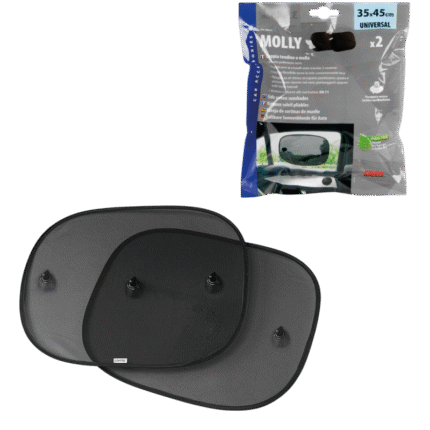 uego de dos parasoles para ventanillas laterales delanteras, fabricados en poliéster doble capa con función solar e insecticida. Garantizan sombra sin restar visibilidad y se colocan fácilmente con ventosas o ganchos. Perfectos para proteger a pasajeros laterales del sol directo.