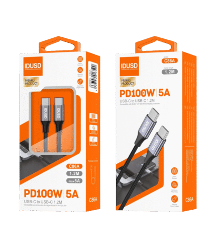 Su longitud de 1.2 metros proporciona la flexibilidad necesaria para conectarse cómodamente a tomas de corriente alejadas, siendo práctico para usar en casa, la oficina o durante viajes. Es compatible con una amplia gama de dispositivos USB-C y optimizado para trabajar con el cargador PD3.0 CHARGER IDUSD (D60B), maximizando su funcionalidad.