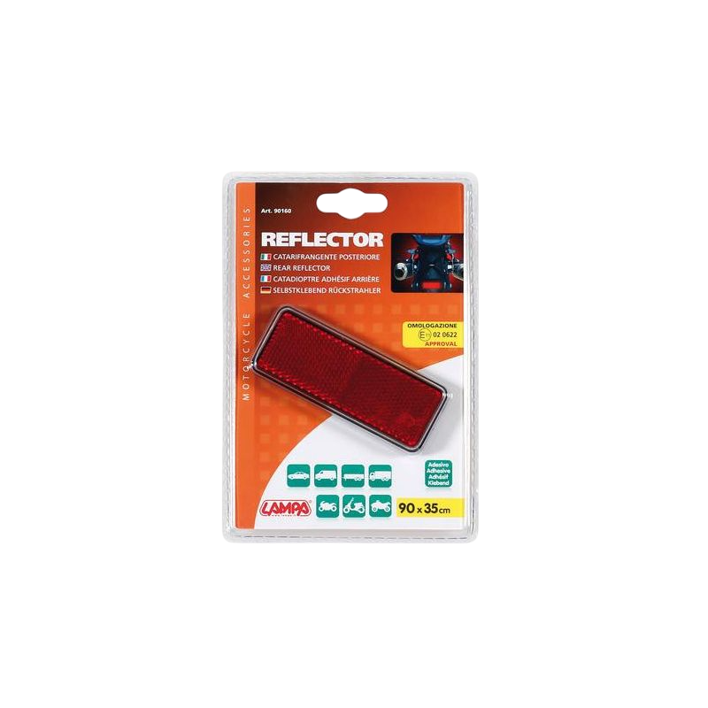 Reflector trasero adhesivo homologado, apto para todos los vehículos. Aplicación rápida, reflectividad óptima y visibilidad garantizada.