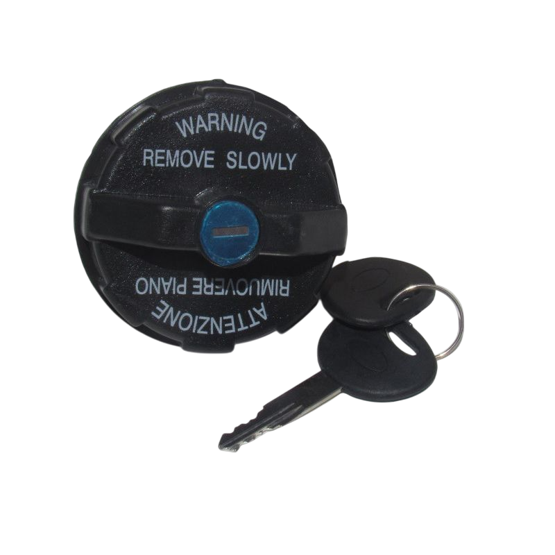 Tapón de depósito universal de PVC con llave lateral (80 mm). Cierre seguro, fácil de instalar y protección contra robo y contaminación. Perfecto para vehículos industriales.